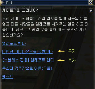 ▶就是第二个选项~~可以拿下图那白色宝石换单一村庄的回归卷轴 (至於白色宝石的取得方法等新资料出来就报给大家知道~~)第三个选项是贵族专用传送点