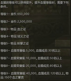 如果血盟金钱富裕,也可以直接购买血之证升级血盟。