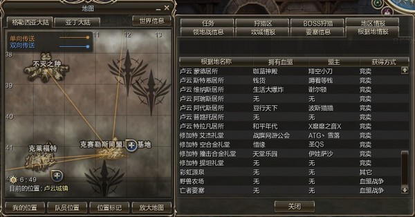 6、要塞信息:要塞位置,所占领血盟,占领时间等;