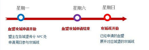 在各城堡周围,有**血盟盟主报名使用的传令NPC,与NPC对话,在“攻城情报”一栏中可以选择“申请参加”,登记攻城。申请动作必须在攻城战开始前24小时完成。
