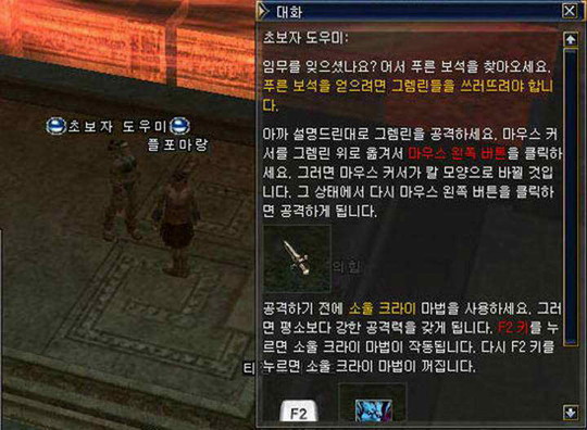 原本有狩猎尼比特狐狗收集4个狐狗的尖牙就能的到世界地图的任务,但在第三章只要抓到任务怪(葛林)得到蓝色宝石交给开始村庄内的初学者帮手(暂译)就能得到新手专用灵魂弹100发,之后在新手奖励次元里达到6级就能得到追加的灵魂弹。 |